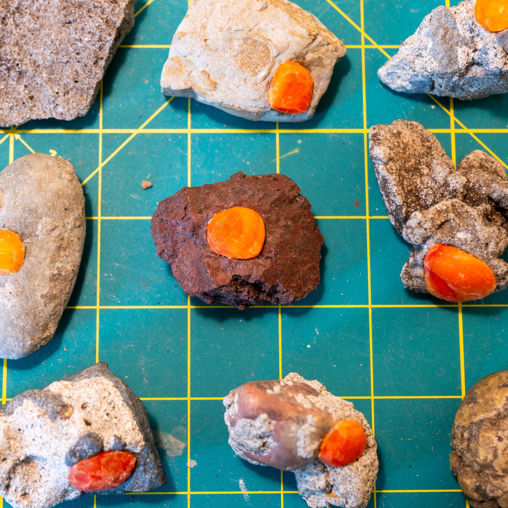 Field Companions are a collection of interactive sculptures that imbue everyday materials with the agency to share their stories. Found stones become chosen representatives of local biomes and specific intersections, emphasizing what researcher Jane Bennett describes as “agential assemblages” of human and nonhuman materialities equally making space. What worlds can we create when collaborating across living forms and once-living materials?