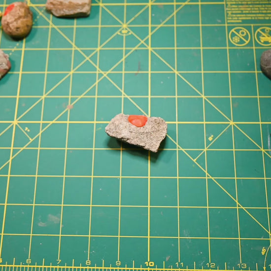 - Found stones, dyed polyurethane, electronic chips, audio file, location metadata, website